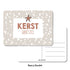 Enkele kerstkaart - formaat A6 (10,5 x 14,8 cm). Gedrukt op stevig papier wat makkelijke te beschrijven is. De kaart heeft afgeronde hoeken en op de achterzijde staan lijntjes voor het adres en is voldoende ruimte voor een kerstboodschap